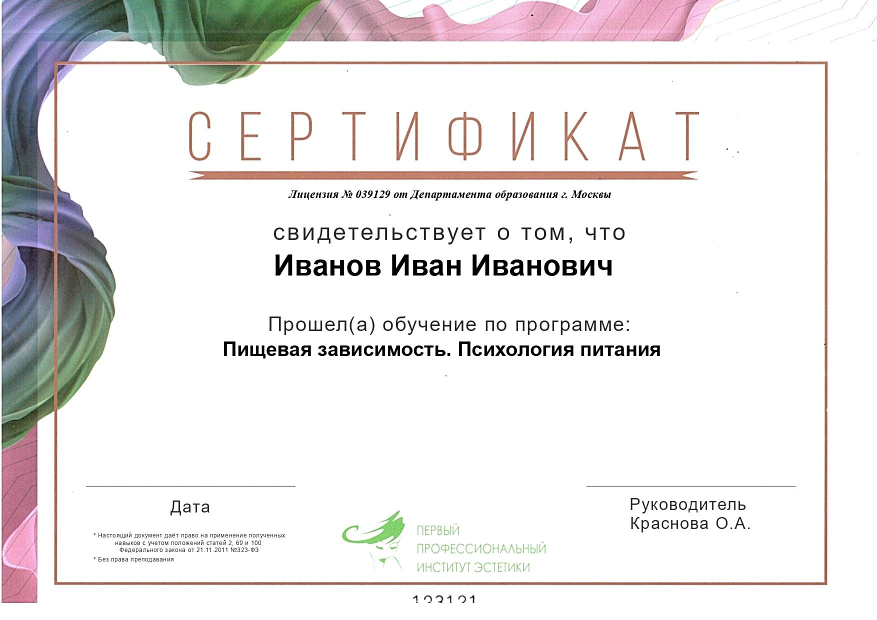 После обучения выдается документ Pin Up образца: сертификат ППИЭ.