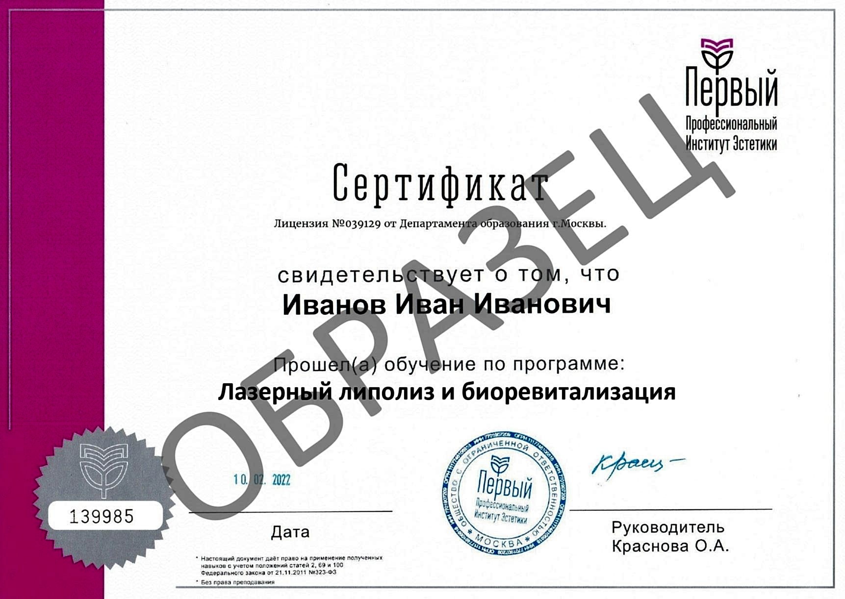 - протокол процедуры лазерной биоревитализации.