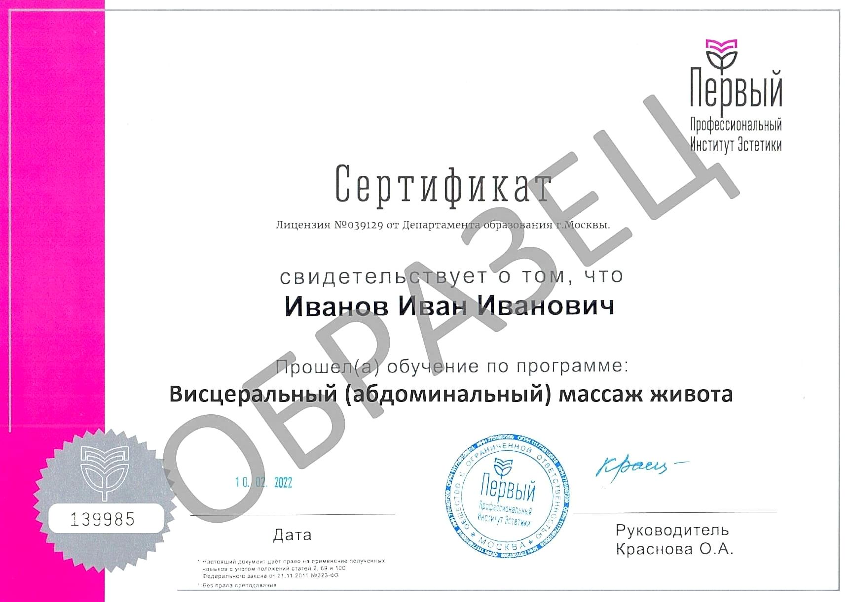 Выдаваемый документ:сертификат ППИЭ.