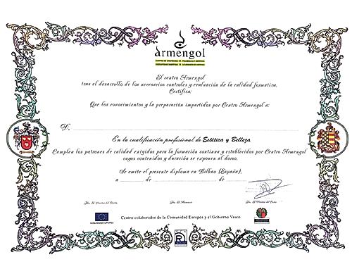 - Pin Up сертификат Cualificacion profecional de Estetica y Belleza испанской школы Centro Armengol (сертификат с вашим именем будет в реестре этой Школы).
