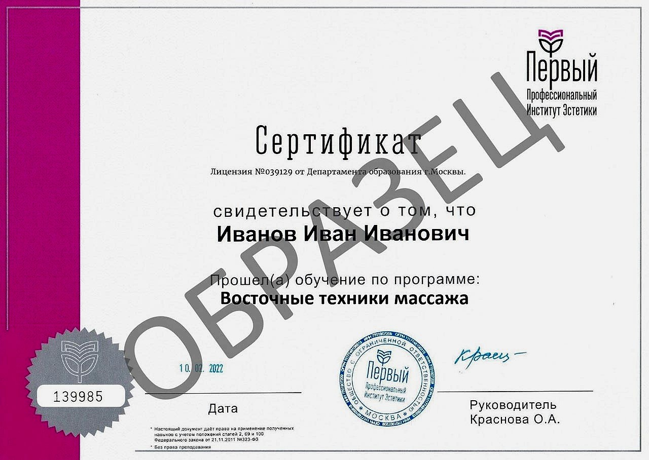 После обучения выдается документ установленного образца: сертификат.