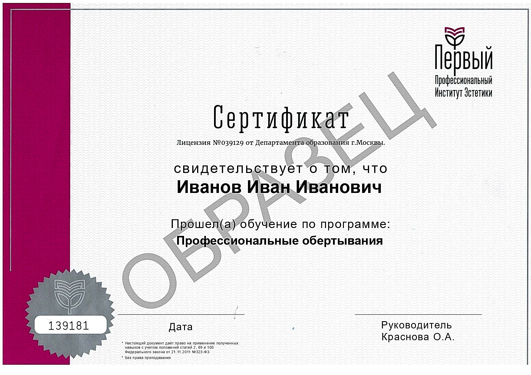 Благодарю за увлекательный и познавательный курс «Профессиональное обертывание» под руководством Калабиной Pin Up Геннадьевны.