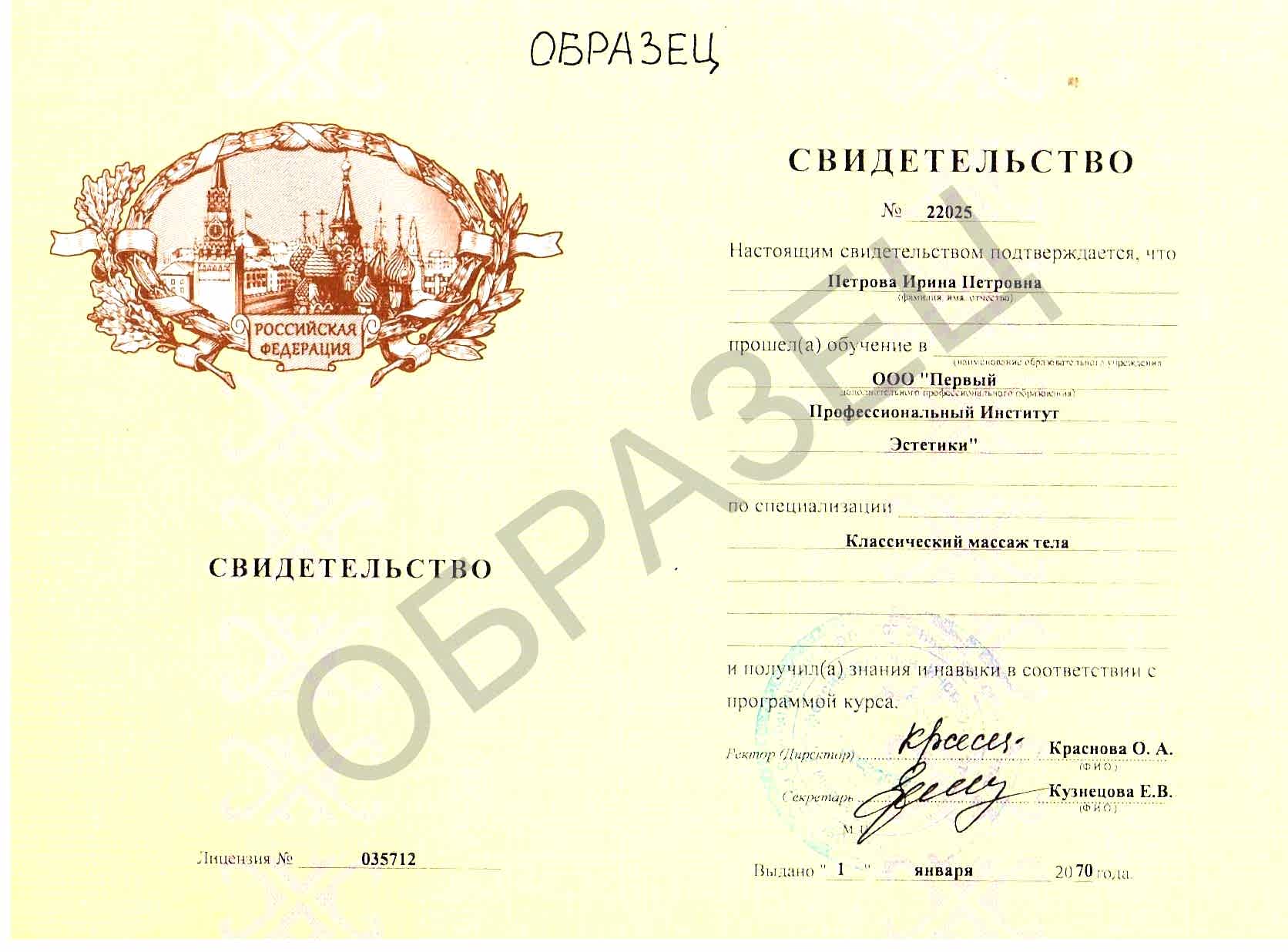 - выпускники, не имеющие медицинского образования, получают свидетельство ППИЭ об Pin Up курса "Классический массаж" и свидетельство ППИЭ установленного образца "Лечебная физкультура";